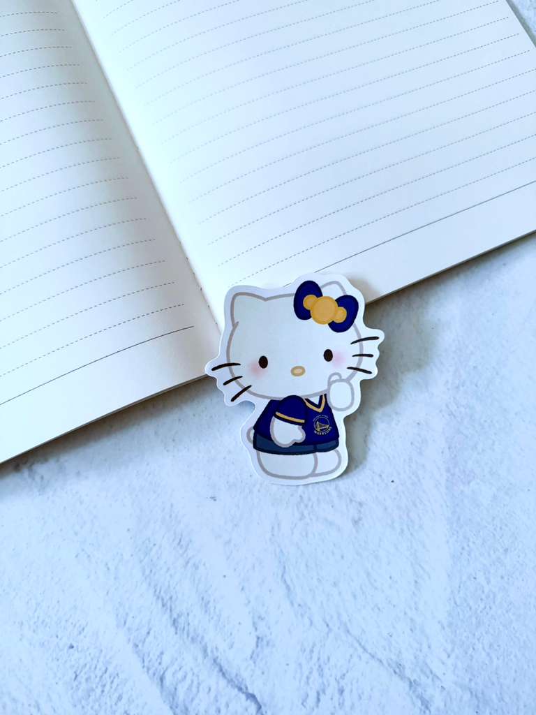 Show your Bay Area pride with this adorable Hello Kitty Golden State Warriors die-cut sticker!
